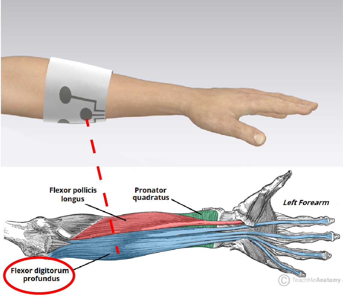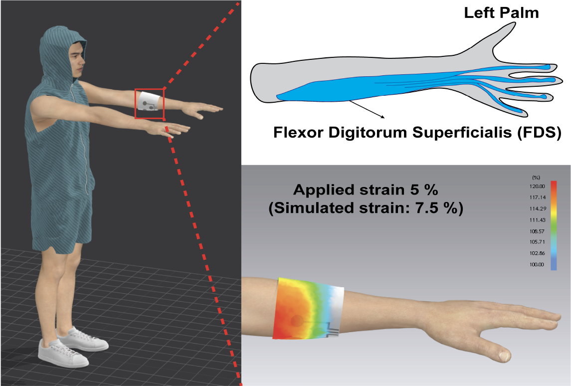 EMG Forearm Band Placement and Simulated Strain Distribution